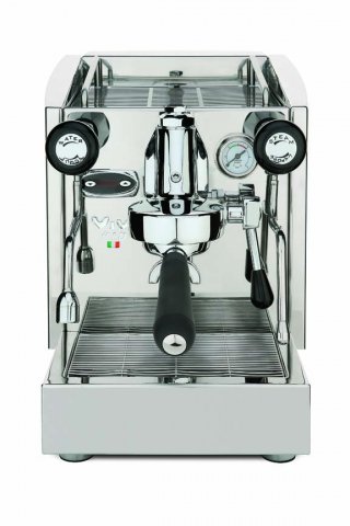 The VIVI PID espresso coffee machine is well known for its simplicity, linearity and brilliant silver color. It is a single boiler heat exchanger (HX) model, equipped with electronic thermo regulation and stainless steel finishing taps with anti burn grips.